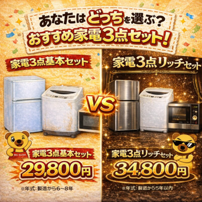 - 【名古屋の新生活準備】一人暮らしや単身赴任におすすめ!選べる家電3点セ...