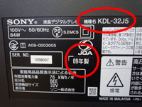■本体背面などにある製造シールに年式や型番の記載がございます。